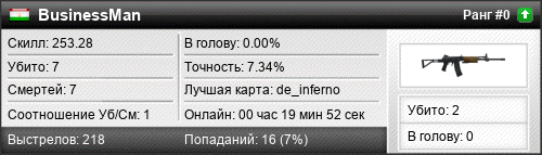 | de_inferno | 4 | 0.67 | 0.24 | 1 | 10 | 00:16:26 | 29.03.2020 | |