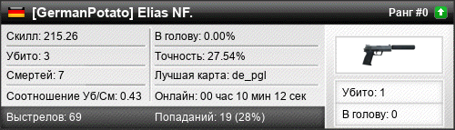 | de_csgothic | 1 | 0.33 | 0.25 | 1 | 3 | 00:04:01 | 21.07.2019 | |