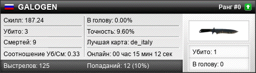 | de_nuke | 0 | 0.00 | 0.00 | 2 | 2 | 00:01:24 | 03.08.2019 | |
