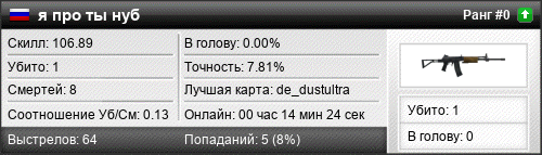 de_dust2 | 0 | 0.00 | 0.00 | 1 | 1 | 00:00:23 | 13.03.2020 |