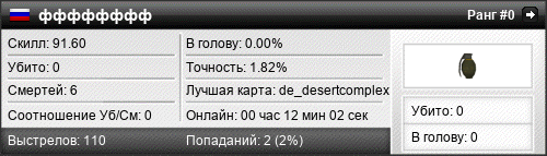 | de_assault | 0 | 0.00 | 0.00 | 1 | 2 | 00:02:53 | 26.08.2019 | |