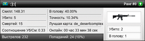 | de_desertcomplex | 4 | 0.40 | 0.20 | 1 | 13 | 00:19:51 | 26.08.2019 | |