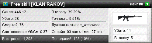 | de_dust2 | 5 | 0.22 | 0.15 | 7 | 29 | 00:32:18 | 13.12.2020 | |