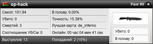 | de_inferno | 0 | 0.00 | 0.00 | 1 | 3 | 00:02:28 | 21.09.2019 | |