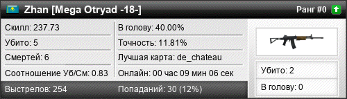 | de_chateau | 5 | 1.00 | 0.71 | 1 | 6 | 00:07:03 | 27.09.2019 | |