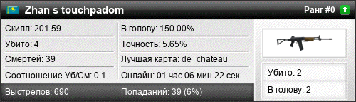 | de_chateau | 3 | 1.50 | 1.16 | 0 | 2 | 00:02:35 | 01.01.1970 | |