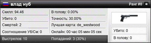 | de_westwood | 0 | 0.00 | 0.00 | 1 | 2 | 00:01:20 | 04.10.2019 | |