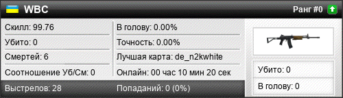 | 28.05.2018 @ 10:50 - 10:51 | de_n2kwhite | 00:01:40 | 0 | 1 | 0 | 0.00% | 0.00% | 99.76 |