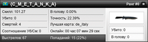 | de_westwood | 0 | 0.00 | 0.00 | 1 | 4 | 00:05:33 | 04.11.2019 | |
