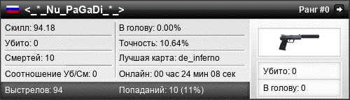 | de_mirage | 0 | 0.00 | 0.00 | 1 | 11 | 00:17:53 | 10.11.2019 | |