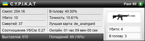 | de_avangard | 3 | 0.43 | 0.25 | 1 | 7 | 00:12:10 | 25.11.2019 | |