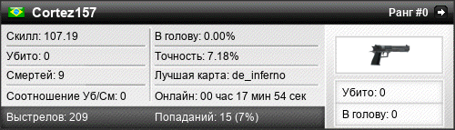 | de_inferno | 0 | 0.00 | 0.00 | 1 | 11 | 00:17:54 | 24.10.2015 | |