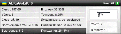 | de_westwood | 2 | 0.29 | 0.07 | 1 | 19 | 00:27:00 | 19.12.2019 | |