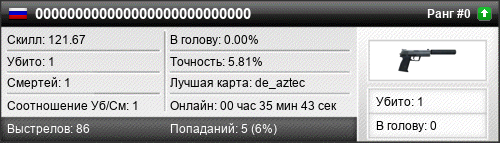 | 26.06.2023 @ 11:46 - 11:49 | de_aztec | 00:03:07 | 1 | 1 | 0 | 0.00% | 10.64% | 111.67 |