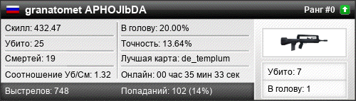 | de_nifan | 11 | 1.83 | 1.66 | 0 | 6 | 00:06:37 | 01.01.1970 | |