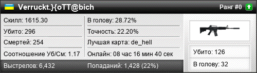 | de_nuke | 22 | 1.10 | 0.52 | 6 | 33 | 00:42:41 | 21.12.2020 | |