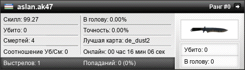 | de_dust2017 | 0 | 0.00 | 0.00 | 0 | 5 | 00:09:24 | 01.01.1970 | |