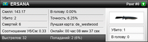 | de_westwood | 1 | 0.20 | 0.13 | 1 | 6 | 00:07:40 | 18.12.2019 | |