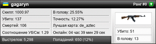 | de_assault | 31 | 1.11 | 0.45 | 6 | 39 | 01:08:25 | 02.08.2024 | |