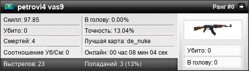 11.01.2020 @ 17:42 - 17:43 | de_smyrna | 00:01:04 | 0 | 1 | 0 | 0.00% | 17.65% | 97.85 ![]() |
