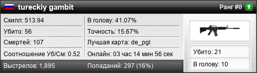 | de_pgl | 10 | 1.43 | 0.48 | 1 | 13 | 00:21:03 | 02.02.2020 | |