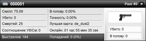 | de_dust2 | 0 | 0.00 | 0.00 | 1 | 27 | 00:26:03 | 01.11.2021 | |