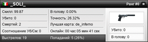 | de_inferno | 0 | 0.00 | 0.00 | 0 | 2 | 00:02:44 | 01.01.1970 | |