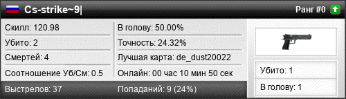 | 15.02.2020 @ 14:30 - 14:31 | de_avangard | 00:00:34 | 0 | 0 | 0 | 0.00% | 0.00% | 100.00 |