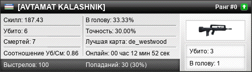 | de_westwood | 5 | 0.71 | 0.50 | 1 | 9 | 00:09:57 | 16.03.2020 | |