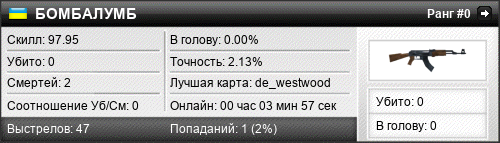 | de_westwood | 0 | 0.00 | 0.00 | 1 | 2 | 00:03:57 | 19.03.2020 | |
