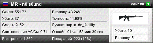 | de_ware | 5 | 1.67 | 0.54 | 1 | 6 | 00:09:12 | 03.04.2020 | |