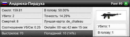 | de_chateau | 2 | 0.25 | 0.07 | 1 | 17 | 00:26:57 | 14.04.2020 | |