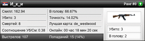 | de_westwood | 3 | 0.38 | 0.17 | 1 | 10 | 00:17:28 | 16.04.2020 | |