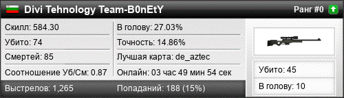 | de_aztec | 37 | 1.42 | 0.51 | 5 | 48 | 01:13:09 | 03.01.2022 | |