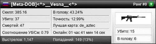 | de_assault | 6 | 0.60 | 0.30 | 2 | 14 | 00:19:43 | 26.04.2020 | |