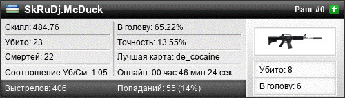| de_cocaine | 9 | 1.80 | 1.12 | 1 | 6 | 00:08:02 | 02.05.2020 | |