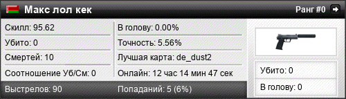 | de_mirage | 0 | 0.00 | 0.00 | 1 | 16 | 00:18:32 | 10.05.2020 | |