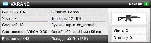 | de_assault | 5 | 0.62 | 0.39 | 1 | 12 | 00:12:44 | 01.06.2020 | |