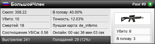 | de_assault | 3 | 0.43 | 0.17 | 1 | 11 | 00:18:03 | 24.07.2020 | |