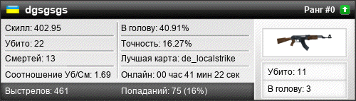 | de_localstrike | 11 | 2.20 | 0.57 | 1 | 14 | 00:19:15 | 27.06.2020 | |