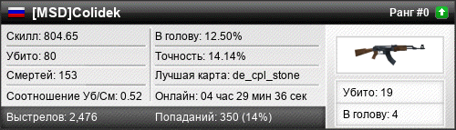 | de_dust2 | 7 | 0.64 | 0.33 | 3 | 19 | 00:21:15 | 06.07.2020 | |