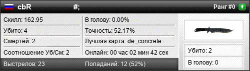 | de_concrete | 4 | 2.00 | 1.48 | 0 | 2 | 00:02:42 | 01.01.1970 | |