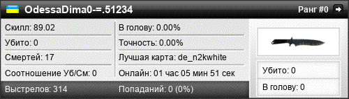 | 27.08.2020 @ 17:51 - 17:51 | de_avangard | 00:00:27 | 0 | 0 | 0 | 0.00% | 0.00% | 89.02 |