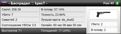 Убито в голову 57.14% 4
