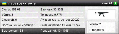 | de_dust20022 | 3 | 0.50 | 0.26 | 1 | 8 | 00:11:31 | 23.07.2020 | |