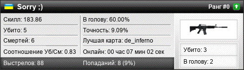| de_inferno | 5 | 0.83 | 0.71 | 1 | 6 | 00:07:02 | 24.07.2020 | |