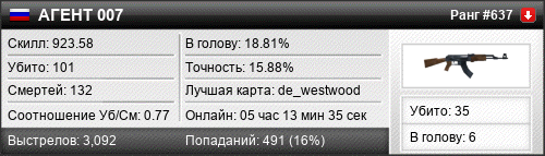 AK-47 35 65 6 17.14% 15.63% 27.06 4K