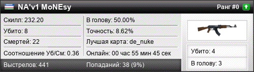 | 25.08.2020 @ 18:16 - 18:17 | de_vine | 00:01:05 | 0 | 0 | 0 | 0.00% | 0.00% | 100.00 |