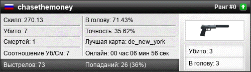 | de_new_york | 4 | 4.00 | 0.92 | 1 | 4 | 00:04:22 | 10.10.2020 | |