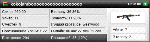 | de_westwood | 9 | 1.80 | 0.66 | 3 | 11 | 00:13:43 | 08.04.2021 | |